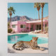 Trae vibrantes y atrevidas vibraciones a tu casa con esta impresionante huella de arte que presenta una majestuosa piscina de leopardo en una casa de Palm Springs retro de ensueño. Con palmeras imponentes, telones de fondo de montaña y un toque de glam vintage, esta pieza capta la combinación perfecta de moda y silvestre.