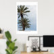 Hermosas palmeras californianas con un fondo de Poster azul suave ahora disponible sin el texto: Borde blanco: Poster completo