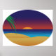 Póster Palm Tropical Sunset Beach deja olas oceánicas