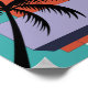 Esta vibrante obra de arte combina siluetas tropicales de palmeras con un fondo geométrico de rectángulos en colores cálidos inspirados en la puesta de sol. El contraste audaz entre las palmeras negras y los bloques coloridos y modernos crea una imagen llamativa que evoca un ambiente de playa retro. El diseño combina elementos tropicales con geometría abstracta, lo que lo convierte en un lugar ideal para la decoración contemporánea o para proyectos gráficos de temática playera.