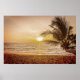 Bonita palmera de coco en una playa tropical al atardecer sobre el océano, este poster es un añadido impresionante a la decoración de cualquier habitación.