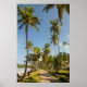 Póster Palmera verde de coco cerca del campo de hierba ve