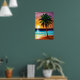 Árbol de palmera generado por IA, océano y puesta de sol, contenido generativo