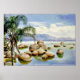 Pintura botánica Marianne North - Palmeras y Boulders en la Bahía de Río, Brasil, poster.