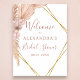 Pampas Grass y Hojas de Palma Boho Floral Eucalipto Bohemian Marco de Acuarela Señal de Bienvenida para Boda de Primavera o Verano - con forma geométrica de falso pan de oro que incluye una tipografía de guión hermosa y elegante con flores botánicas modernas para la celebración del día especial de la boda.