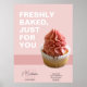 Añada un toque dulce y elegante a su panadería con este Poster rosado con el logotipo de panadería Monograma. Diseñado como una pantalla decorativa, cuenta con un logotipo de monograma de personalizable con espacio para sus iniciales, nombre comercial y lema, además de una deliciosa foto de quequitos para mostrar la personalidad de su marca. Ideal para crear un ambiente cohesivo y llamativo en los mercados, las ventanas emergentes, las mesas de postre o la tienda. ¡Una forma encantadora de añadir calidez y marca a cualquier panadería!