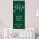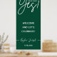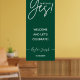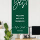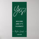 Simple letrero de compromiso con la leyenda 'Ella dijo Sí!' con caligrafía. Disponibles diferentes opciones de color de fondo. Es posible editar los nombres y la fecha del evento.
