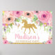 Personalice este encantador banner de fondo de cumpleaños de unicornio y hada floral de primavera con sus datos de manera fácil y rápida, simplemente presione el botón personalizar para reorganizar y dar formato al estilo y la ubicación del texto. ¡Artículos coincidentes disponibles! Invitación coincidente https://www.zazzle.com.au/unicorn_and_fairy_birthday_invitation_pink_floral-256855123115335384 (c) The Happy Cat Studio