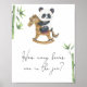 Podemos esperar muy pronto la invitación a la ducha de bebé. Cuidada acuarela pequeño oso panda sobre caballo de juguete y bambú. Elementos coincidentes disponibles.