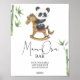 Podemos esperar muy pronto la invitación a la ducha de bebé. Cuidada acuarela pequeño oso panda sobre caballo de juguete y bambú. Elementos coincidentes disponibles.