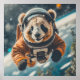Un poster caprichoso y atrevido con un adorable panda vestido de astronauta que se extiende a lo largo del amplio espacio. El panda, vestido de un espacio con un casco claro, flota sin peso entre las estrellas. Su expresión de ojos amplios capta una sensación de asombro y emoción mientras se desliza por el cielo.