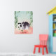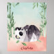 Ilustración de un oso panda blanco y negro divertido dando volteretas cerca de bambú verde con estilo de acuarela. Es un diseño excelente para los amantes de los pandas o fanáticos de animales súper lindos. Los colores son pastel y parecen una pintura de acuarela. Esta impresión alegrará cualquier dormitorio o sala de juegos para niños. Se puede personalizar con el nombre de su hijo.