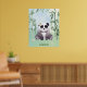 Ilustración de un oso panda blanco y negro sentado cerca de bambú verde con estilo de acuarela. Es un diseño excelente para los amantes de los pandas o fanáticos de los animales súper lindos. Los colores son pastel y parecen una pintura de acuarela. Esta impresión alegrará cualquier dormitorio o sala de juegos para niños. Se puede personalizar con el nombre de su hijo.