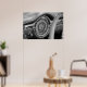 Fotografía monocromática de alta definición del tablero de un coche americano vintage de los años 50.
