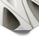 Panel de vidrio de tono negro ovalado sobre superficie blanca