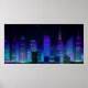 Póster Panorama de la ciudad nocturna con neón resplandec