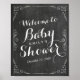 Plantillas de Poster de señas de bienvenida de Baby Shower - Guión con letras elegantes y marco floral blanco vintage con fondo de pizarra negra ondulada. Todos Los Estilo De Texto, Los Colores Y Los Tamaños Se Pueden Modificar Para Ajustarse A Sus Necesidades.