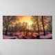 Panoramic view of snowy park during sunset in Riga, Latvia.