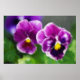 Dos brillantes pansies moradas sobre un fondo verde. La original es una pintura al óleo en miniatura de Kathie Miller