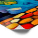 La A.I. creó la impresión de un florero vibrante de paneles coloridos que se sienta sobre un fondo dinámico y abstracto con patrones giratorios y un frente similar al mosaico.
