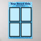 Personalizar tu propio poster de premios de visualización de fotos y cuelga en cualquier práctico tablón de anuncios o espacio en la pared para el reconocimiento de ventas, empleados o estudiantes del mes, reconocimiento voluntario y más, con 4 ranuras para fotos (el tamaño mostrado contiene 4 fotos 5x7), tu texto personalizado y la elección del esquema de color.