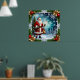 Santa Claus, vestido con un atuendo rojo clásico, se alza en medio de un telón de fondo nevado rodeado de decoraciones festivas, un brillante árbol de Navidad y un mágico paisaje invernal.
