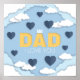 Mejor papá texto amarillo, corazones voladores azules, nubes blancas en el cielo, suministros de fiesta del día del padre