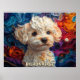 Este es un retrato de perro colorido y abstracto de una raza de Bichon Frise al estilo del arte en el tejido de papel. Es un encantador poster para los amantes del perro y de los dueños de Bichon Frise.