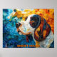 Este es un retrato abstracto de un perro colorido de raza Basset Hound con estilo artístico de tejido de papel. Es un poster encantador para los amantes del perro y los dueños de los Libros Basset.
