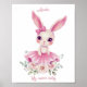 Arte de pared de niña coneja rosa floral con texto personalizado
