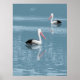 Un bonito par de pelícanos remando a lo largo de las tranquilas aguas azules.