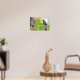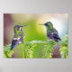 Póster Pareja verde de colibrí en una hoja