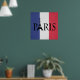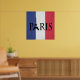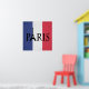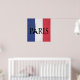 Ilustracion de diseño de texto de París con decoración de la Torre Eiffel sobre fondo de la bandera francesa gruesa