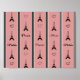 Ilustracion de París con Torre Eiffel y decoración del corazón y diseño de texto de París sobre fondo rayado negro, blanco y rosa
