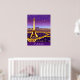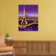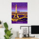 Poster en un ilustracion impresionista de París contra un cielo morado estrellado, con la Torre Eiffel iluminada en gpld
