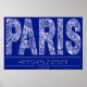 Póster Paris Blueprint Typography Map Poster – Horizontal