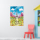 Una pintura acuarela que representa la Torre Eiffel en París, Francia. El emblemático monumento está rodeado por un exuberante y florido parque con flores. El cielo es azul claro con nubes blancas onduladas.