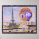 Este cuadro paisajístico de este poster fue inspirado en París, Francia y cuenta con la Torre Eiffel, un caniche rosa, la palabra "París" y un globo aerostático de Kristie Hubler