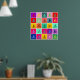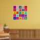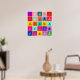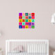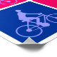 25 cuadrados de diversos colores armoniosos cada uno con un hombre en bicicleta con un motivo de cortesía, o a veces de un color ligeramente contraproducente. Cada motivo de bicicleta está alineado o rotado ligeramente diferente, lo que da la impresión de una historieta de un viaje en bicicleta con muchos colores psicodélicos.