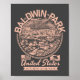 Baldwin park City, California en estilo de diseño vintage con la bandera del estado de California, el lema, incorporó y coordina ubicación en el condado de Los Ángeles.