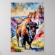 Esta impresión de arte muestra un retrato acuarela de un bisonte caminando por el Parque Nacional Badlands en Dakota del Sur.