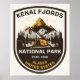 Este diseño presenta montañas, luna, estrellas, árboles, un camping y el texto "Parque Nacional de los Fiordos de Kenia, Estd. 1980, Alaska, Estados Unidos".