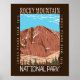 Diseño de arte vectorial de las Montañas Rocosas. El parque es conocido por la carretera Trail Ridge y la ruta Old Fall River, que atraviesa los bosques de álamos y ríos.