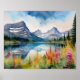 Esta impresión de arte cuenta con un retrato acuático del Parque Nacional Glacier en Montana.
