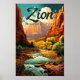 Diseño de arte vectorial Zion. El parque es una reserva natural del suroeste de Utah que se distingue por los acantilados rojos pronunciados del cañón de Zion.