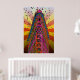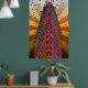 Una vista caprichosa, colorida y psicodélica de la parte superior del icono de la ciudad de Nueva York, el edificio Flatiron. Este muestra rayas rojizas/naranjas y amarillas. También viene con patrones de color adicionales.
