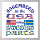 La imagen muestra ambas banderas de EE. UU. y Suecia. Se lee: "Ensemblado en EE. UU. utilizando partes suecos". Siempre divertido y genial para reír para aquellos con sentido del humor. Divertido para compartir tus raíces, herencias, ascendencias y culturas suecas y estadounidenses. Genial para reuniones familiares y clubes culturales, también.