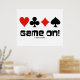 Muestra tu lado de jugador de puente irónico/duplicado con este poster que presenta los cuatro palos de cartas junto con las siguientes palabras de aliento: "¡Juego!" ¡Gran poster para cualquier club puente/puente duplicado!