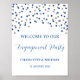 Personalizado de texto compromiso fiesta de bienvenida poster con confeti plateado y azul.