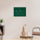 Elegante cartel de graduación con "Bienvenida" en un guión blanco moderno de caligrafía con un fondo verde (o color de su elección). Personalice al moderno poster de graduación agregando el nombre del graduado, el nombre de la escuela y el año de graduación. El signo verde de graduación es perfecto tanto para graduados de secundaria como universitarios.